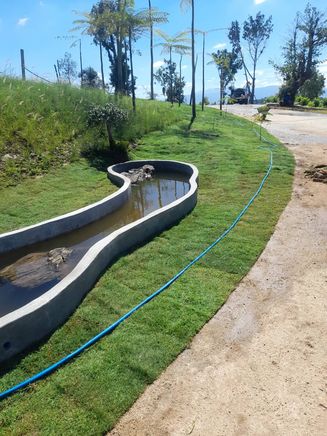- ปรับพื้นให้เหมาะสมกับการวางหญ้าเทียม