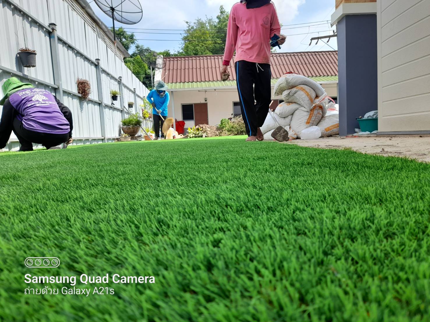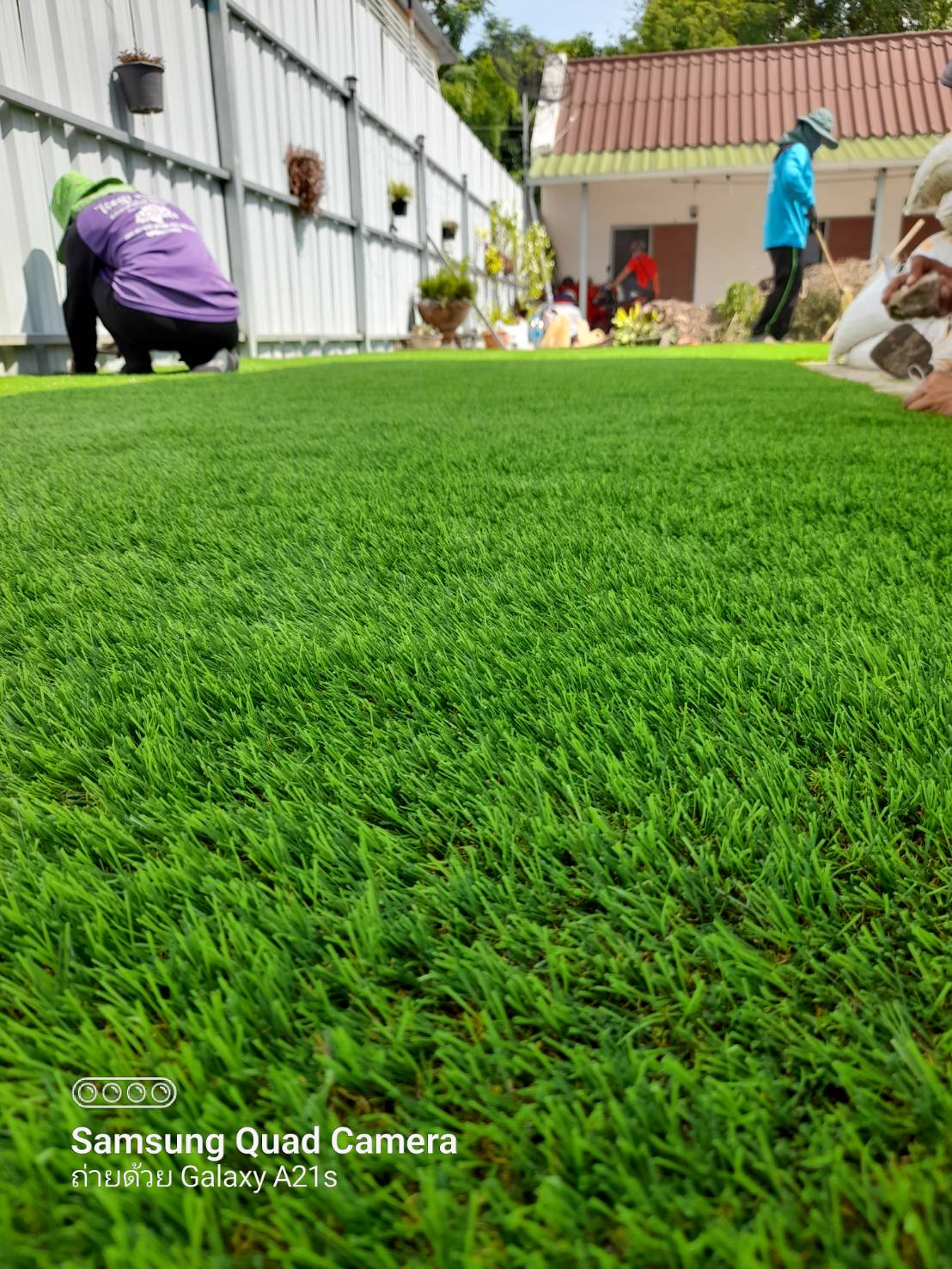- วางหญ้าเทียมและเก็บขอบเรียบร้อย